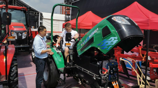 图为现场观众试驾黄海金马电动拖拉机